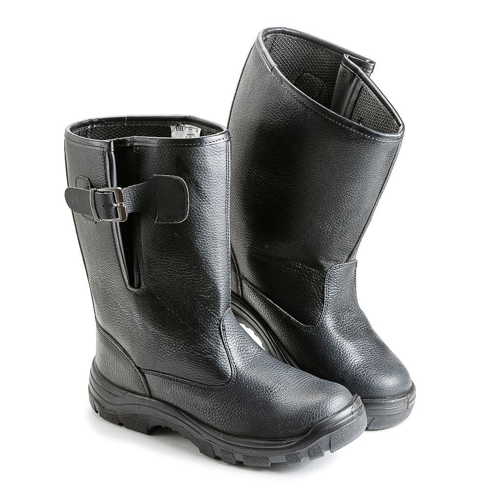 Сапоги из натуральной кожи и искусственных материалов, голенище регулируется пряжкой, высота сапога около 260 мм (от пола), основная стелька из штробельного материала, комфортная вкладная стелька из кожкартона дублированного волокниной, искусственный мех, внутренний металлический подносок до 200 Дж, удобная колодка анатомической формы.